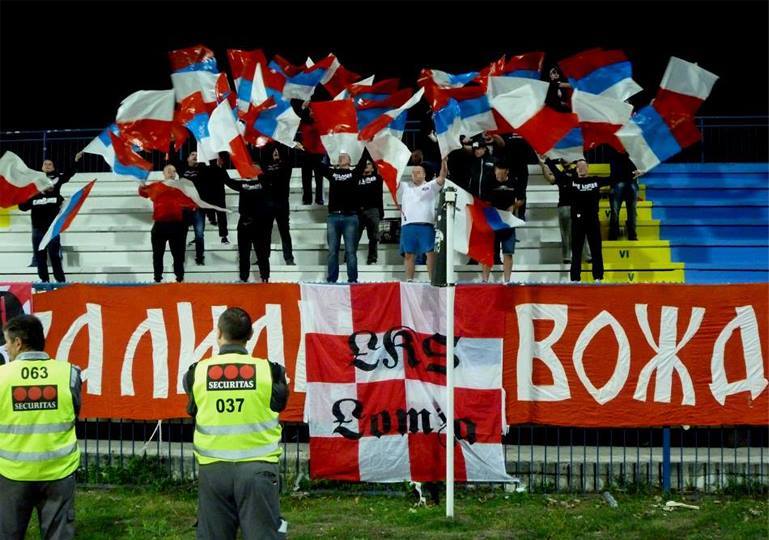 mają żadnego młyna, stadion malutki ale zadbany. Chłopaki z VFC wywieszają 4 flagi (w tym jedną nasza) oraz prezentują machajki w barwach Serbii i Polski przy czym odpalają piro. Całe spotkanie dopingujemy głośno jak na naszą liczbę.