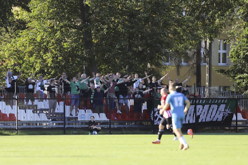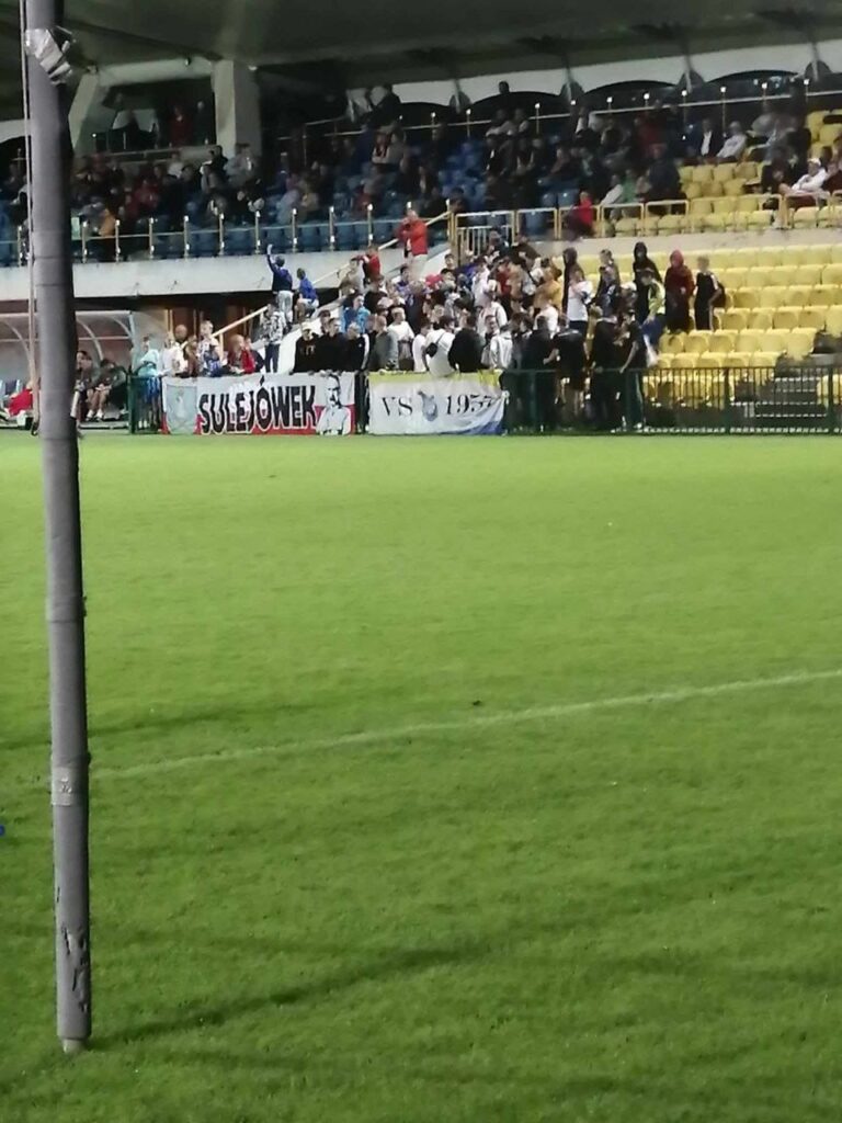 Relacja kibiców gospodarzy: „Na początku meczu minuta ciszy ze względu na ostatnią smutną wiadomość, Śp. Sylwester Domański – Szacunek na Zawsze.