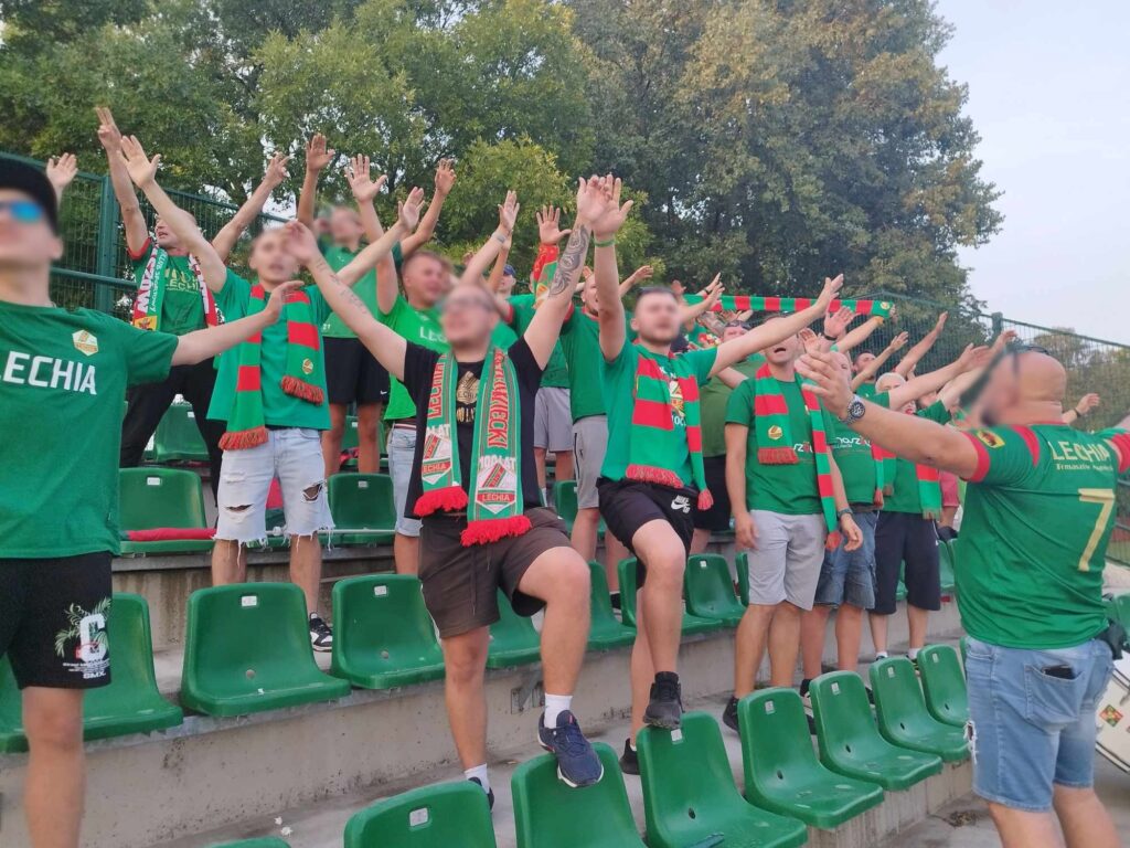 Relacja kibiców gości: „Do Sieradza udajemy się w 37 osób, ale zawsze mogło być lepiej. Wchodzimy sprawnie na sektor bez żadnych problemów, wieszamy flagę i już przed meczem dajemy znać piłkarzom, że jesteśmy z nimi na każdy meczu. Od samego początku dopingujemy w asyście bębna, co wychodziło nam naprawdę nieźle, bo poruszenie wśród miejscowych wywołaliśmy niesamowite. Dwa razy w ciągu spotkania machamy dwudziestoma zielono-czerwonymi flagami i jedną czarną LP w towarzystwie głośnego dopingu. W drodze powrotnej pełna integracja w autokarze – jak zwykle