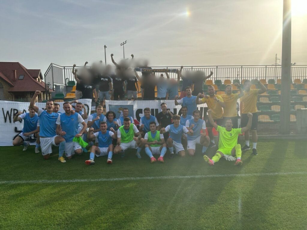 Relacja kibiców gości: „W oddalonym o 270km Wikielcu stawiamy się w liczbie 14 osób z flagą oraz transparentem dla Czarnego. Piłkarze pewnie wygrywają i po meczu razem z nimi zbijamy piątki oraz robimy wspólną fotkę. Dziękujemy miejscowym za podrzucenie piw.”
