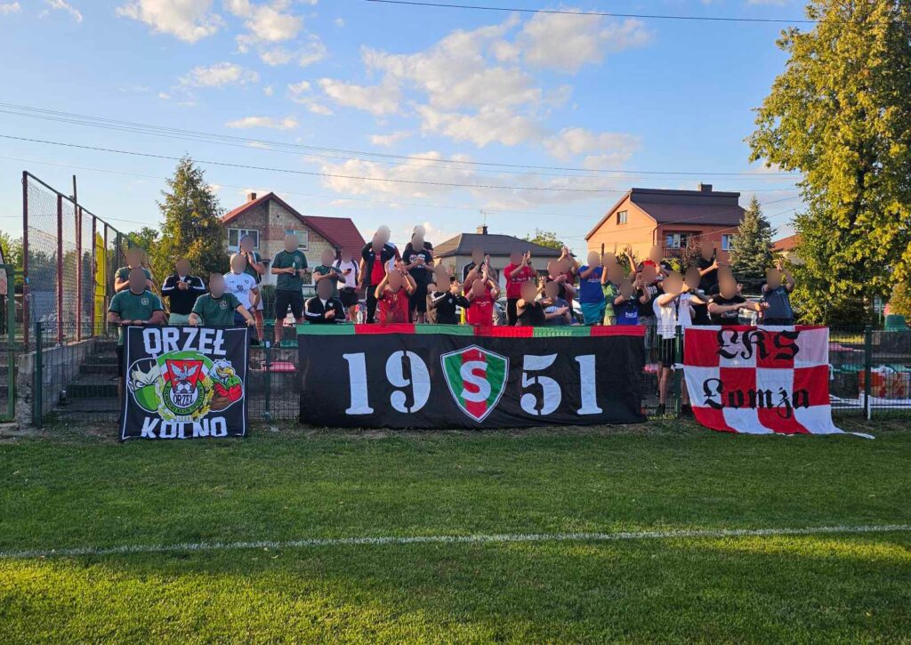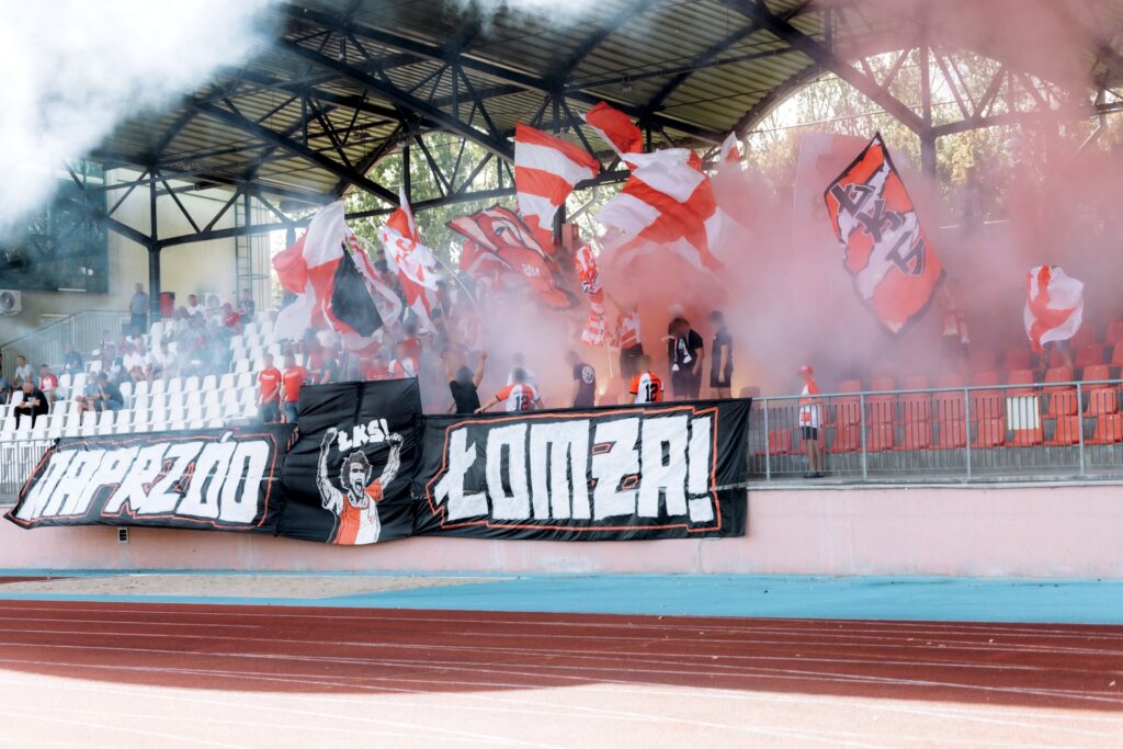 W sobotnie popołudnie wystawiamy ok. 130 osobowy młyn – w tym 9 braci z Szepietowa i FC oraz delegacja Polonii Bydgoszcz (dzięki wielkie za wsparcie!). Grupa ultras postanawia ubarwić inaugurację stosowną oprawą – na pierwszy gwizdek przedstawiają transparent „Naprzód Łomża” z wizerunkiem kibica w barwach, w towarzystwie machajek i pirotechniki, a wspomniane hasło wyjątkowo donośnie rozbrzmiewa po całym stadionie. Piłkarzom tego dnia towarzyszy naprawdę głośny doping przez całe spotkanie.